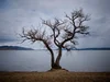 SalvauxDas Bild zeigt einen markanten, blattlosen Baum direkt am Ufer des Murtensees.Der Baum steht allein auf einem kleinen Stück Erde am Rand eines sandigen Strandes. Sein Stamm teilt sich relativ tief in zwei Hauptäste, die sich weit verzweigen und eine unregelmässige, fast skulpturale Form bilden. Die Äste sind kahl, was auf Winter oder frühen Frühling hindeutet.Im Hintergrund sieht man den ruhigen Murtensee, dessen Wasser grau-blau wirkt und leicht bewegt ist. Am gegenüberliegenden Ufer erstreckt sich eine sanfte Hügellandschaft mit verstreuten Häusern und Dörfern.Der Himmel ist stark bewölkt, mit dichten, grauen Wolken, die dem Bild eine ruhige, etwas melancholische Stimmung verleihen. Insgesamt wirkt die Szene sehr still, reduziert und atmosphärisch – typisch für einen kühlen Tag am See.